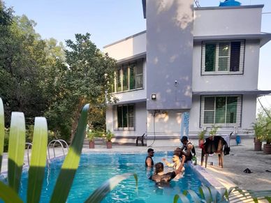 3 BHK Private Villa with Double bedsand washroomm, Private Pool, Main Hall, Huge Dining Table, Private Patio, Kitchen with Cutlery, Private Lawn, Music System, Kids Play Area & Car Park. (2 acre property)