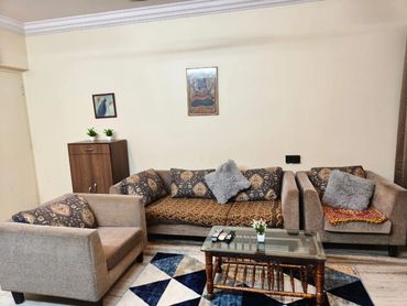 The apartment features beautiful interiors, complemented by modern amenities such as a Smart TV, washing machine, gas cooktop, water purifier, and high-speed internet.