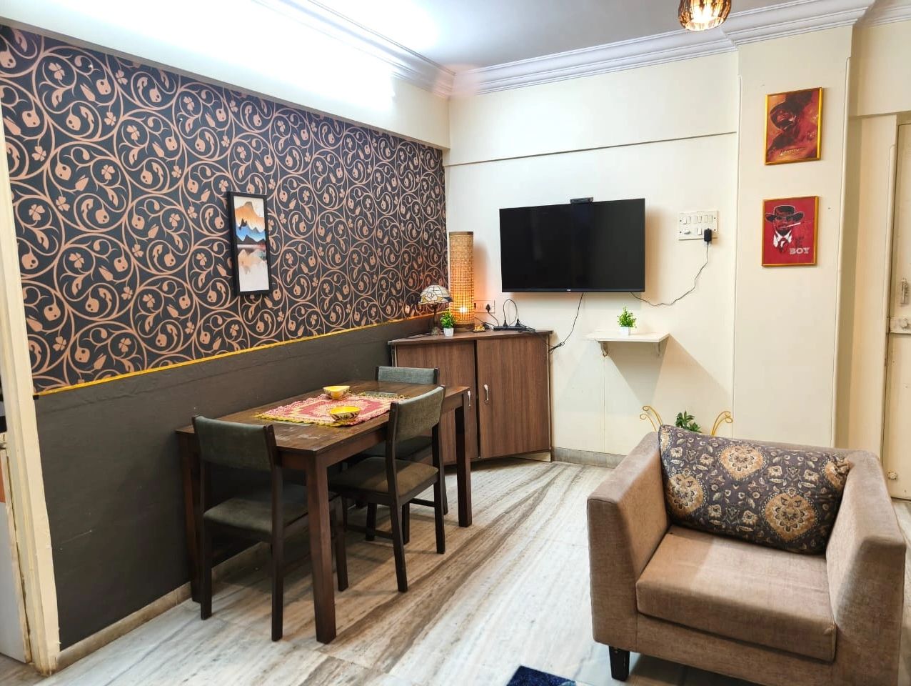 This 2 Bhk apartment is thoughtfully designed to cater to the needs of modern travelers. Enjoy a cozy and calm amidst the hustle and bustle of the city. 📍 Nearby Areas: Andheri West | Jogeshwari | Goregaon | Juhu