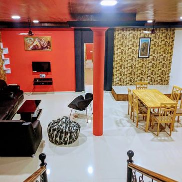 3 AC Rooms with Double beds & Washroom, Main 800 sq feet Hall, Private Terrace 1800 sq feet, Kitchen with Cutlery, Cable television, Private Lawn 1800 sq feet, Music System, Kids Play Area & Car Park.